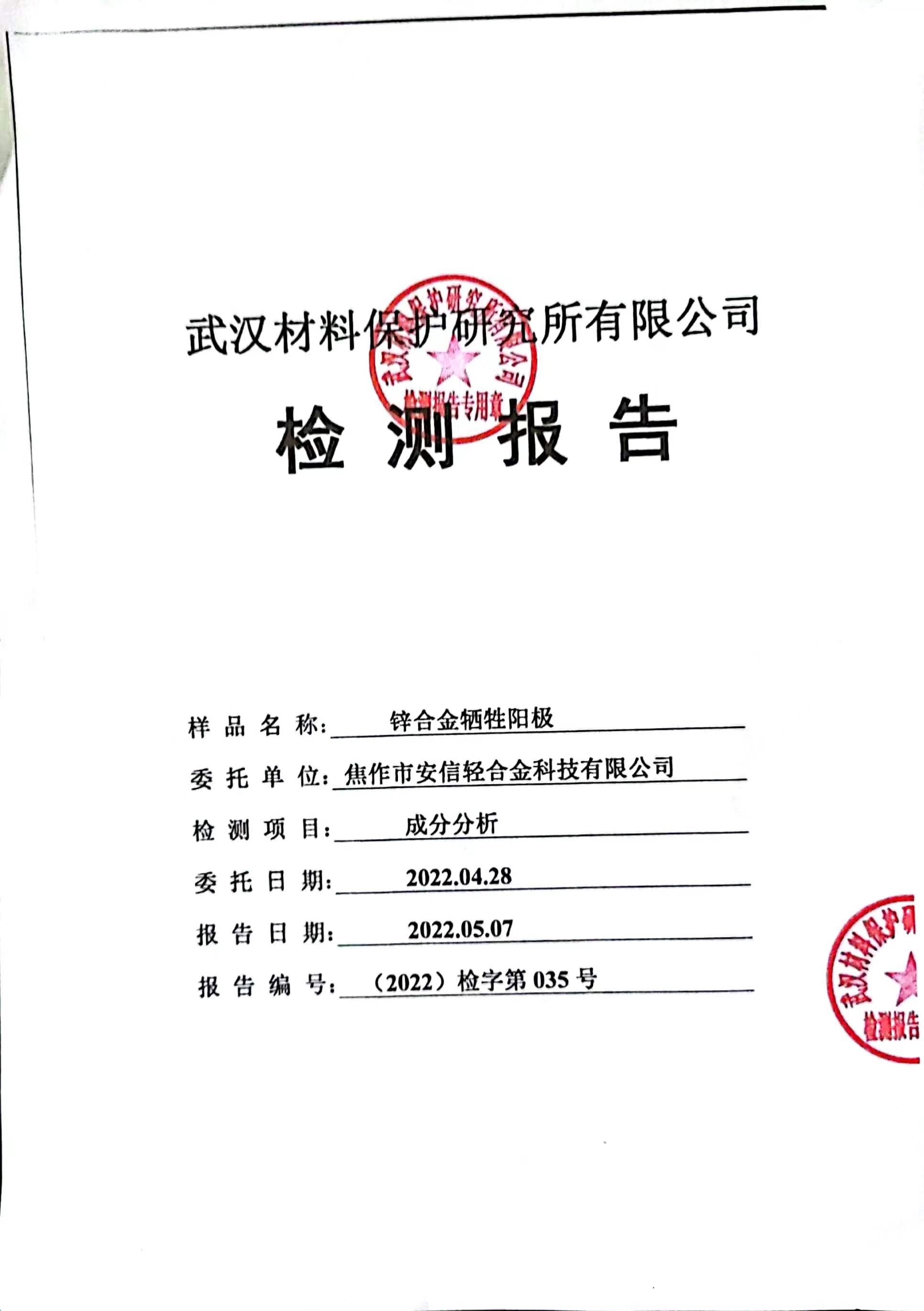 我公司主要生產鎂陽極,鋅陽極,鋁陽極,測試樁,參比電極,陰極保護材料.
